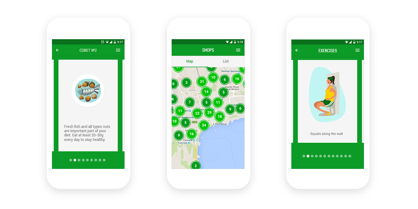 For Liver Doctor app we've created illustrated medical advice section about how to take care of the liver and the information regarding natural food stuff and fitness tips that keep the liver healthy.Map functionality was integrated with customized branded pins. The app has many scheduling options (like a personal calendar, quick-to-set reminders, alerts) that help users take medicine according to recommendations at the right time.