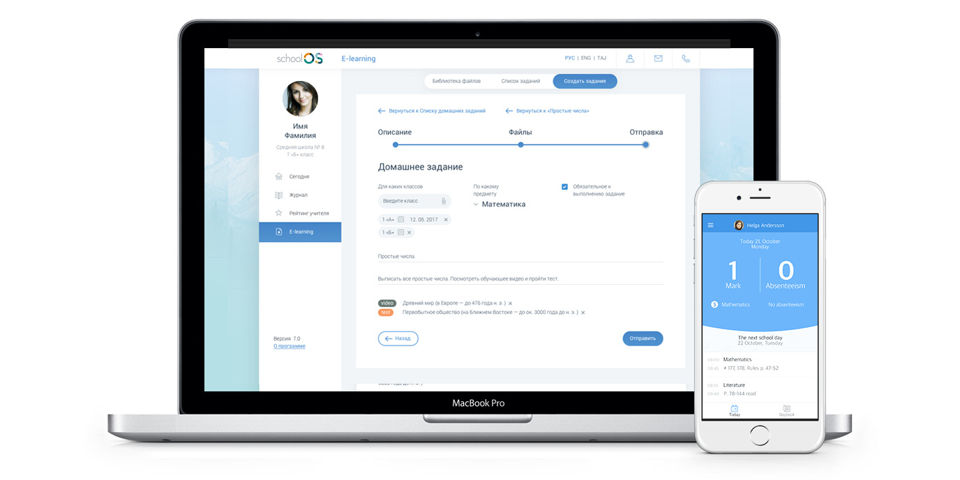 School OS has three types of UI: for parents, for teachers and for school administrators. Each version has a specific functionality. Each user is given a unique ID and password for the system so a parent can access his/her children profile only.